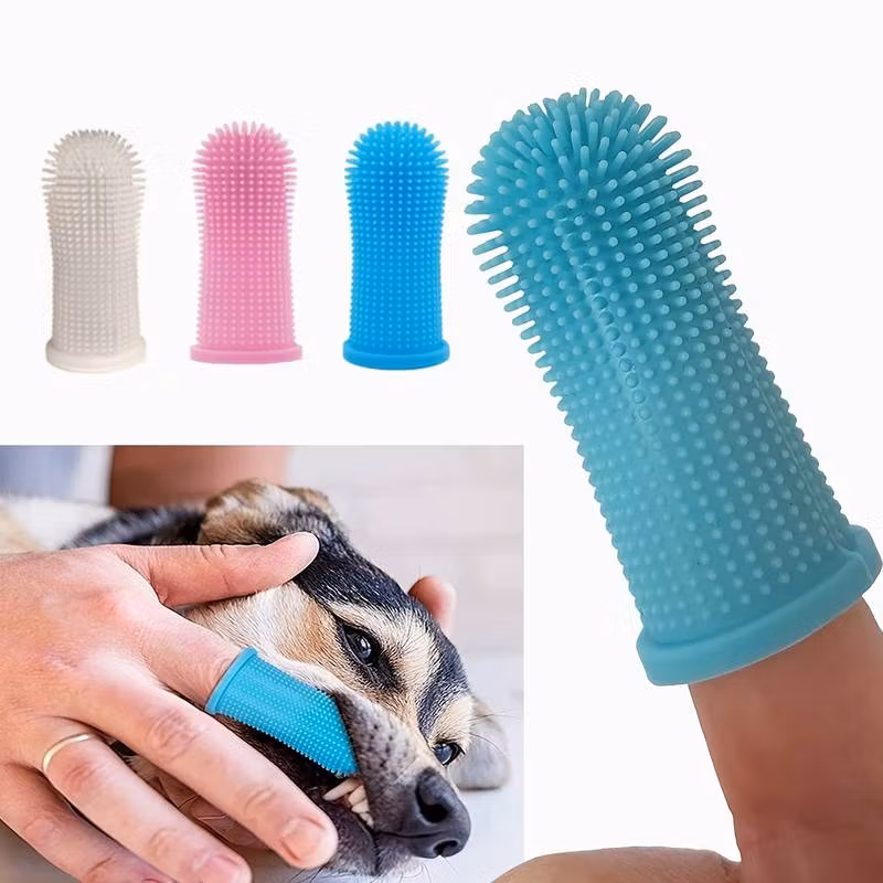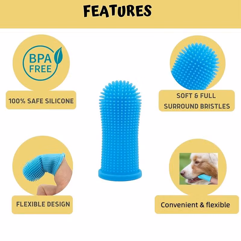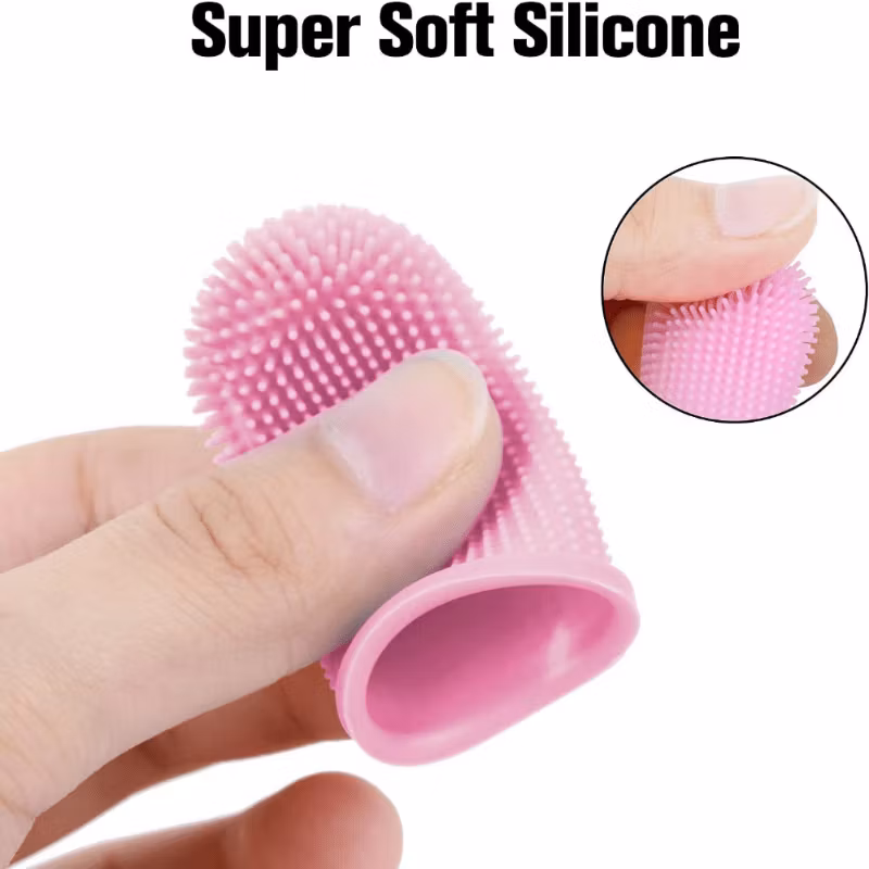 Tannbørste til hund i myk silikon for å plassere på finger. Tannpuss hund kan være krevende med tannbørste for hund, men denne fingerbørsten kan gjøre tannpuss til hunden enklere.